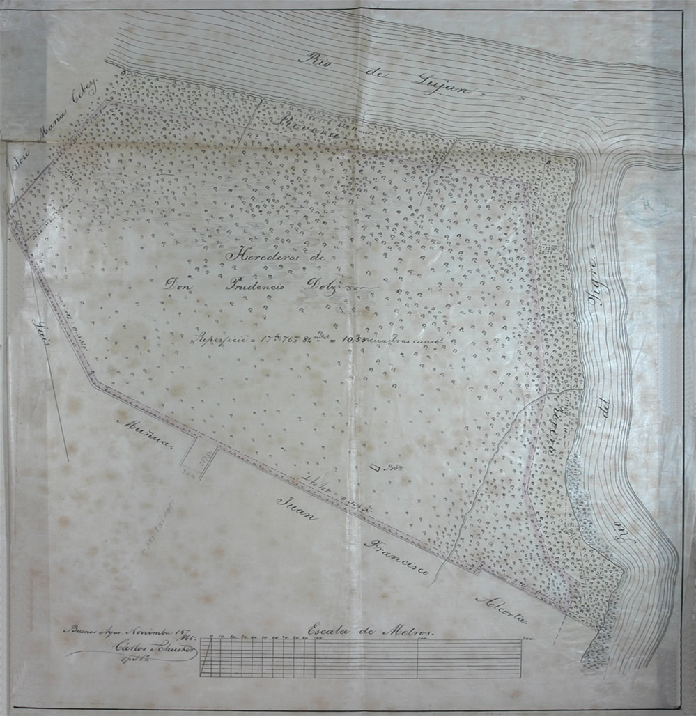 Plano 11 del Agr. Carlos Schuster; 1865. Salida del río Tigre al Luján reflejada en la documentación gestionada por los herederos de Prudencio Dolz.