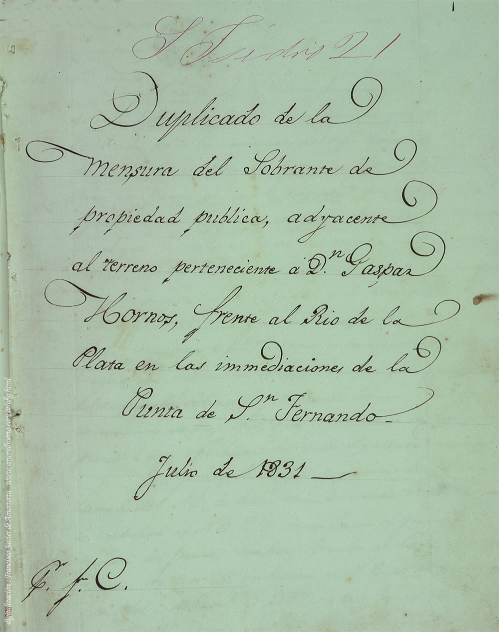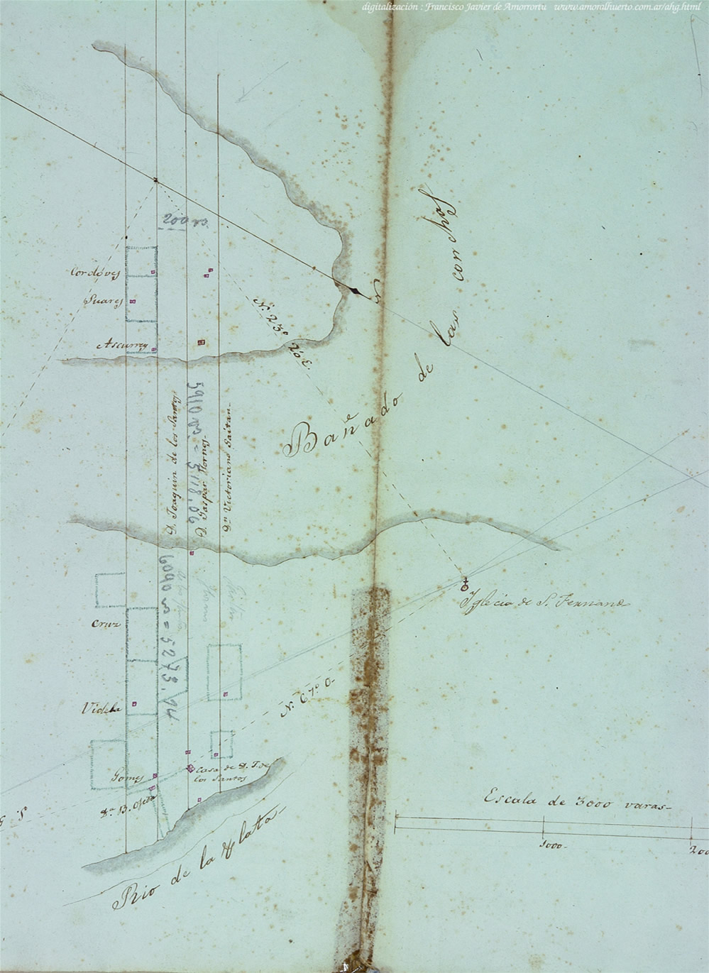 Plano 4 del Agr. Feliciano Chiclana; 1831. Terrenos del Estado linderos a los de Gaspar Hornos, frente al Río de la Plata y Punta de San Fernando.