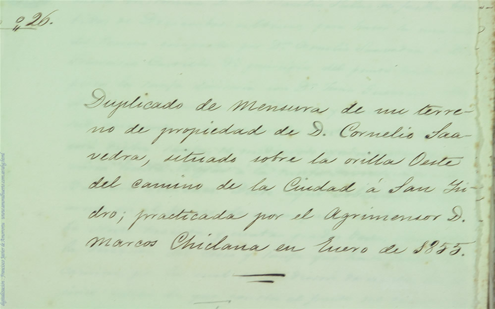 6 del Agr. Marcos Chiclana; 1855. Tierras de Cornelio Saavedra.