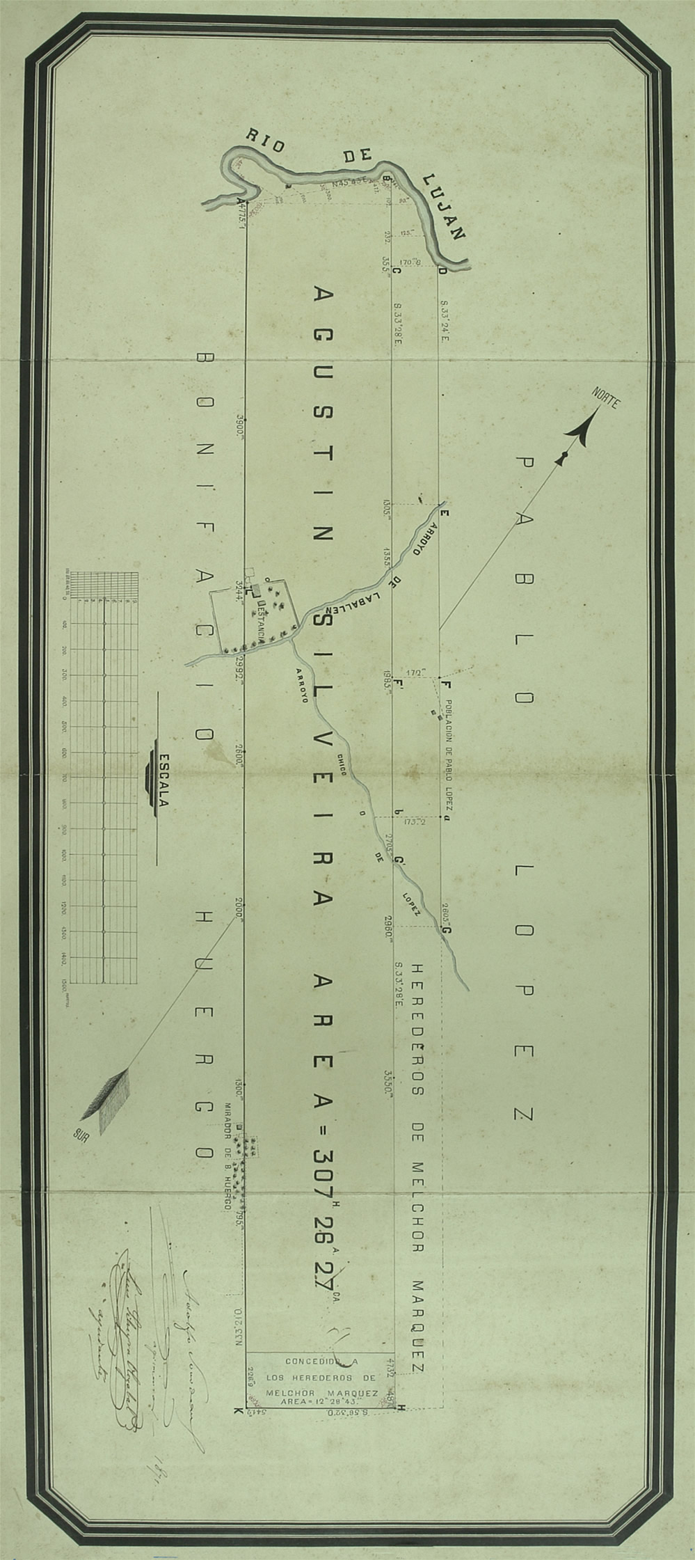 Plano 25 del Agr Adolfo Sourdeaux; 1871. Tierras de Agustín Silveyra.