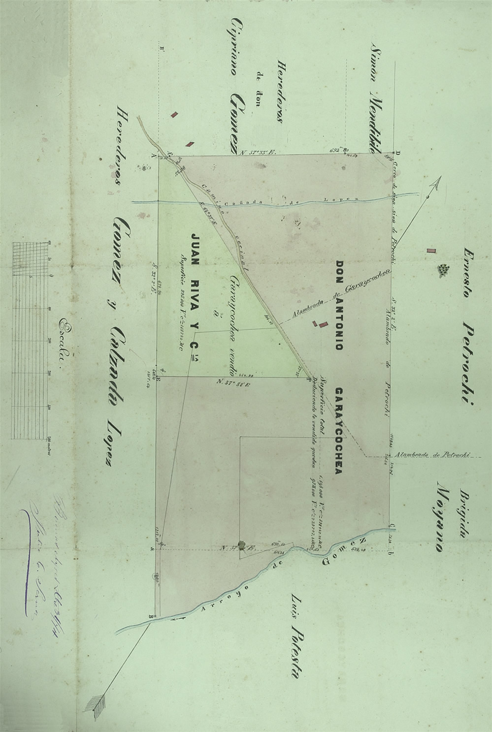 Plano 38 del Agr Julio C. Serna; 1874. Tierras de Antonio Garaycoechea.