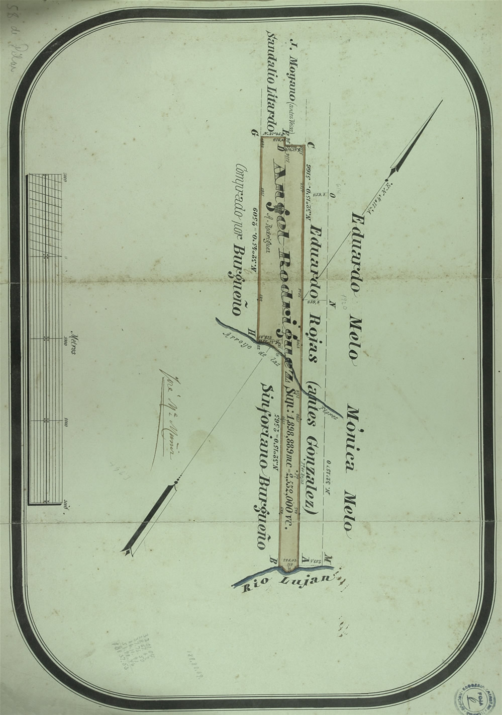 Plano 58 del Agr. José María Muñiz; 1877. Tierras de Ángel Rodríguez.