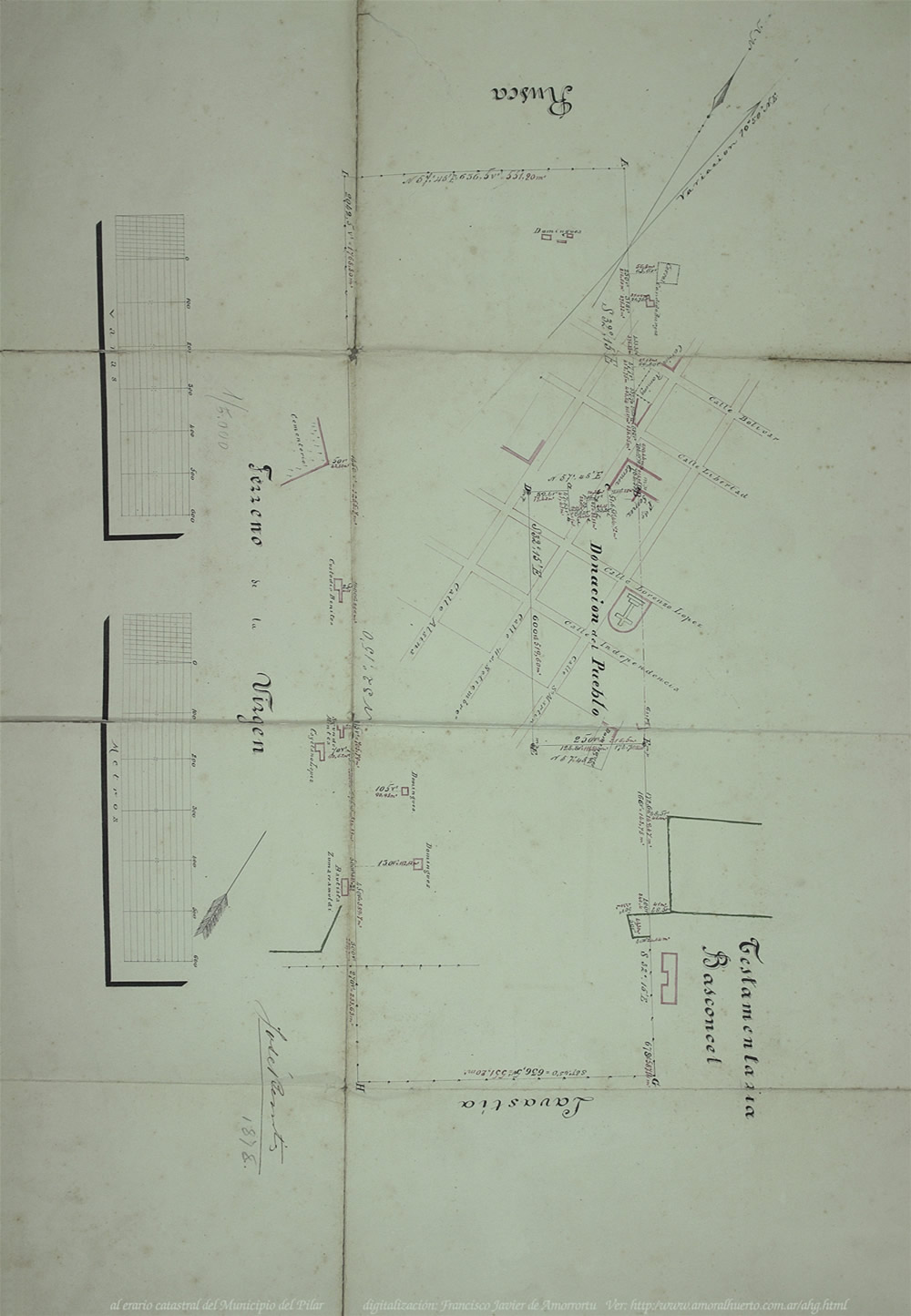 Planos 62 del Agr. José Benítes; 1878. Tierras de José M. Domínguez que conformaron la donación para el traslado del antiguo pueblo del Pilar.