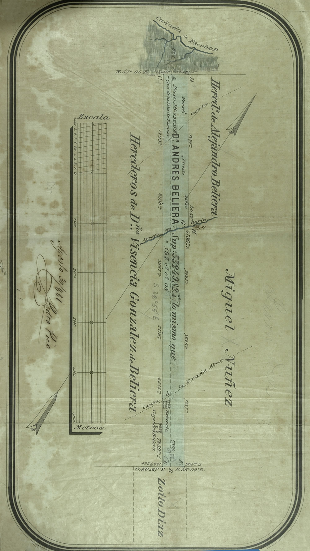 Plano 72 del Agr. Pedro Pico; 1881. Tierras de Andrés Beliera.