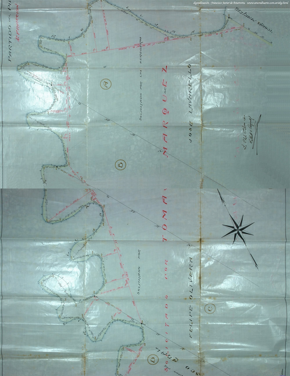 Plano 239 del Agr. Valbert Ringuelet; 1910. Solicitud de tierras por Tomás Marquez (fracción 1°) en los bañados del río Luján. Ley 12/1/1909.