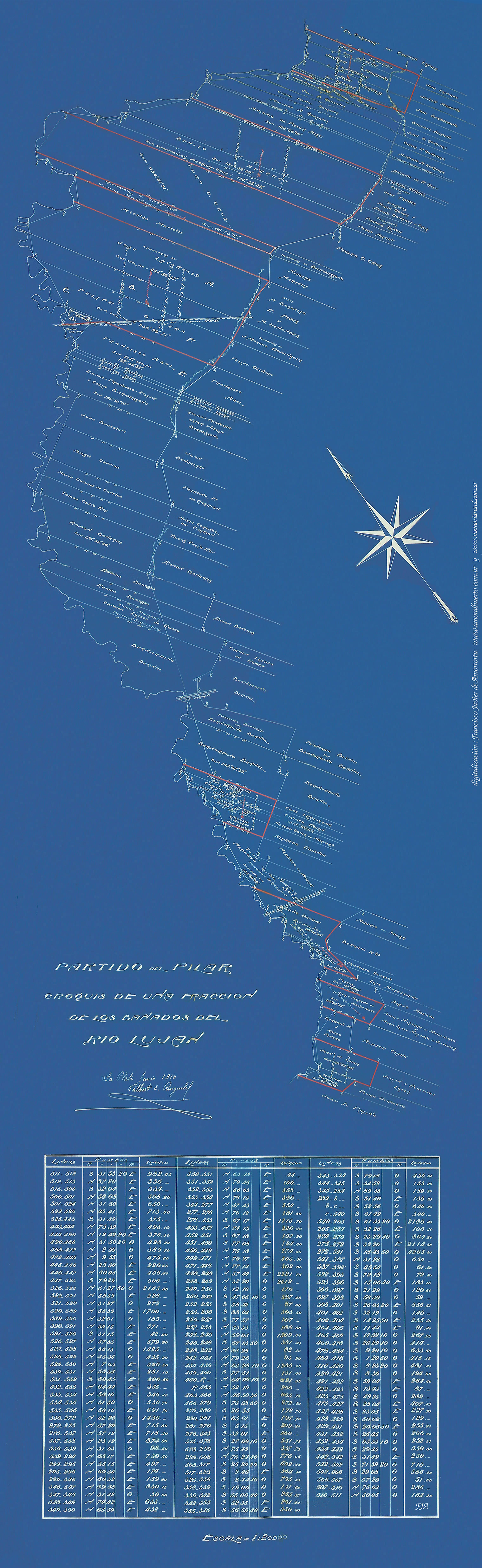 Plano de una fracción de los bañados del río Luján realizado en 1910 por el Agr. Valbert E. Ringuelet.