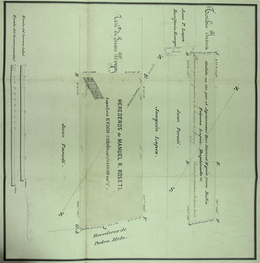 Plano 44 del Agr Julio María Bustos; 1876. Tierras de los herederos de Manuel Ruperto Roseti.