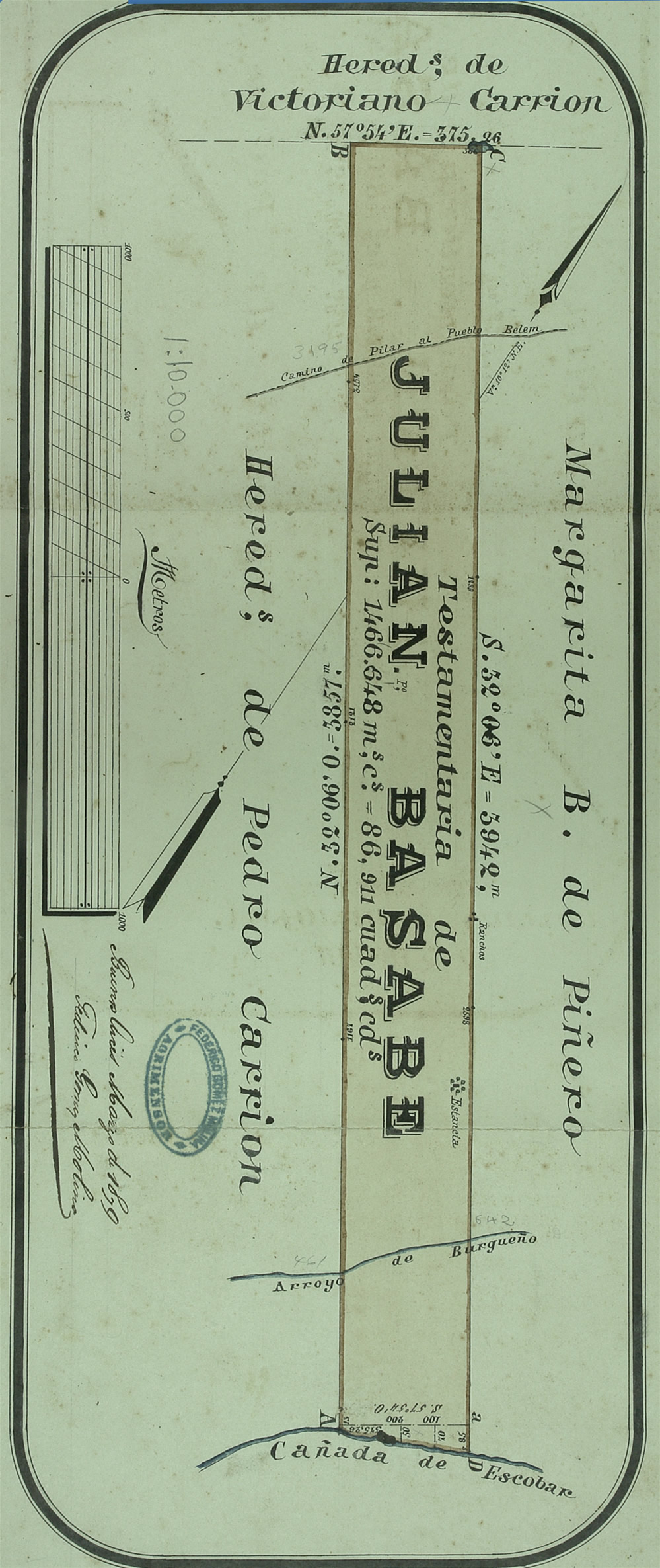 Plano 63 del Agr. Federico Gómez Molina; 1879. Testamentaria de Julián Basabe.