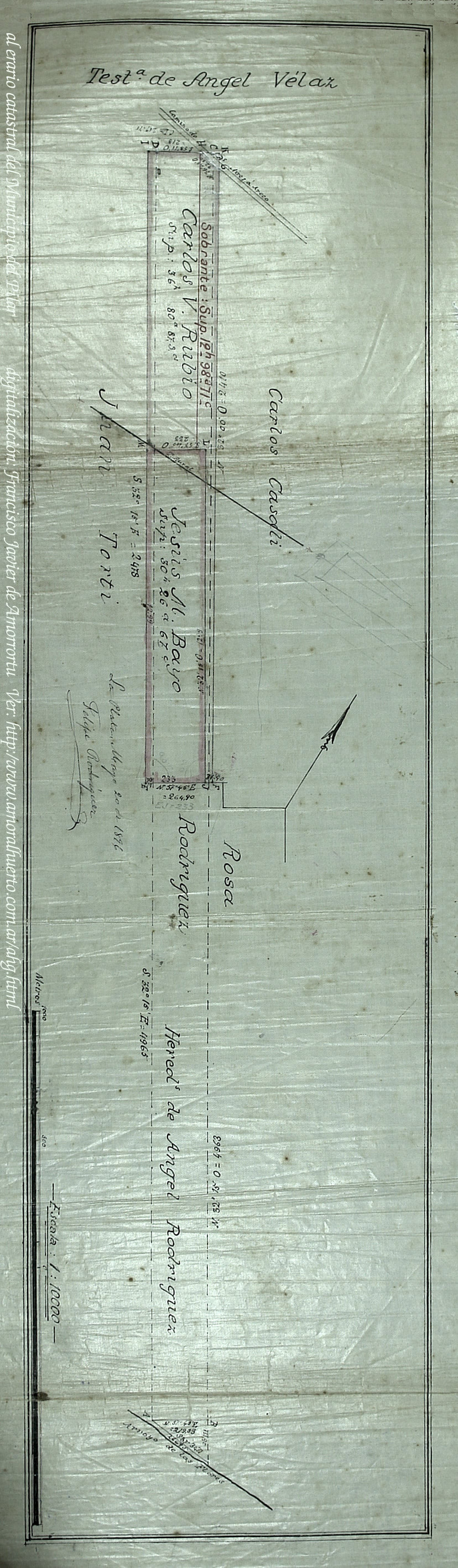 Plano 166 del Agr. Felipe Rodríguez; 1896. Tierras de Carlos Rubio y Jesús Bayo.