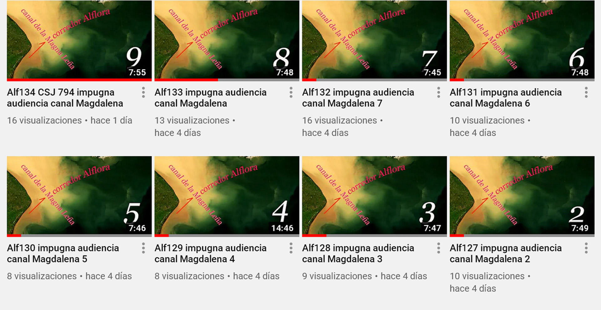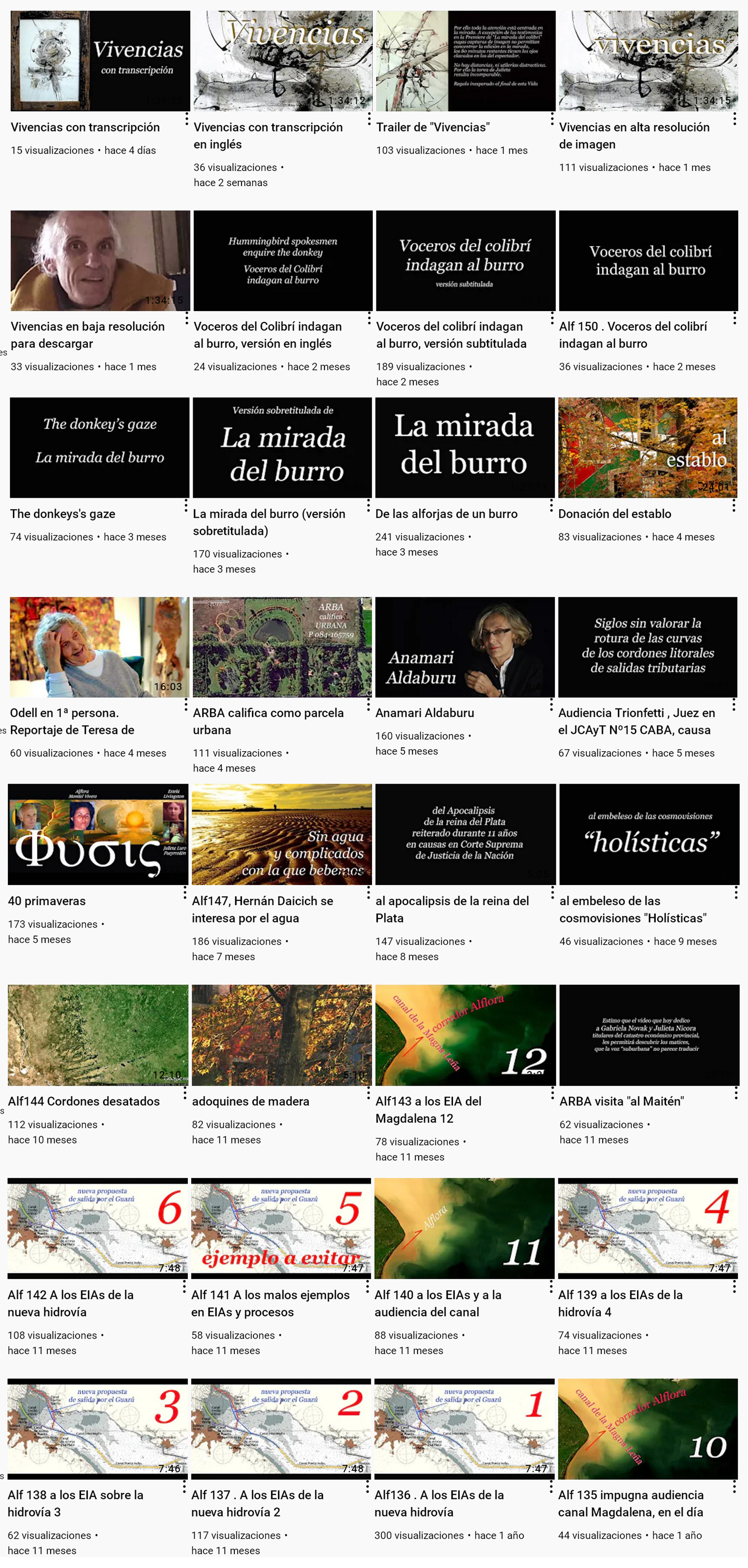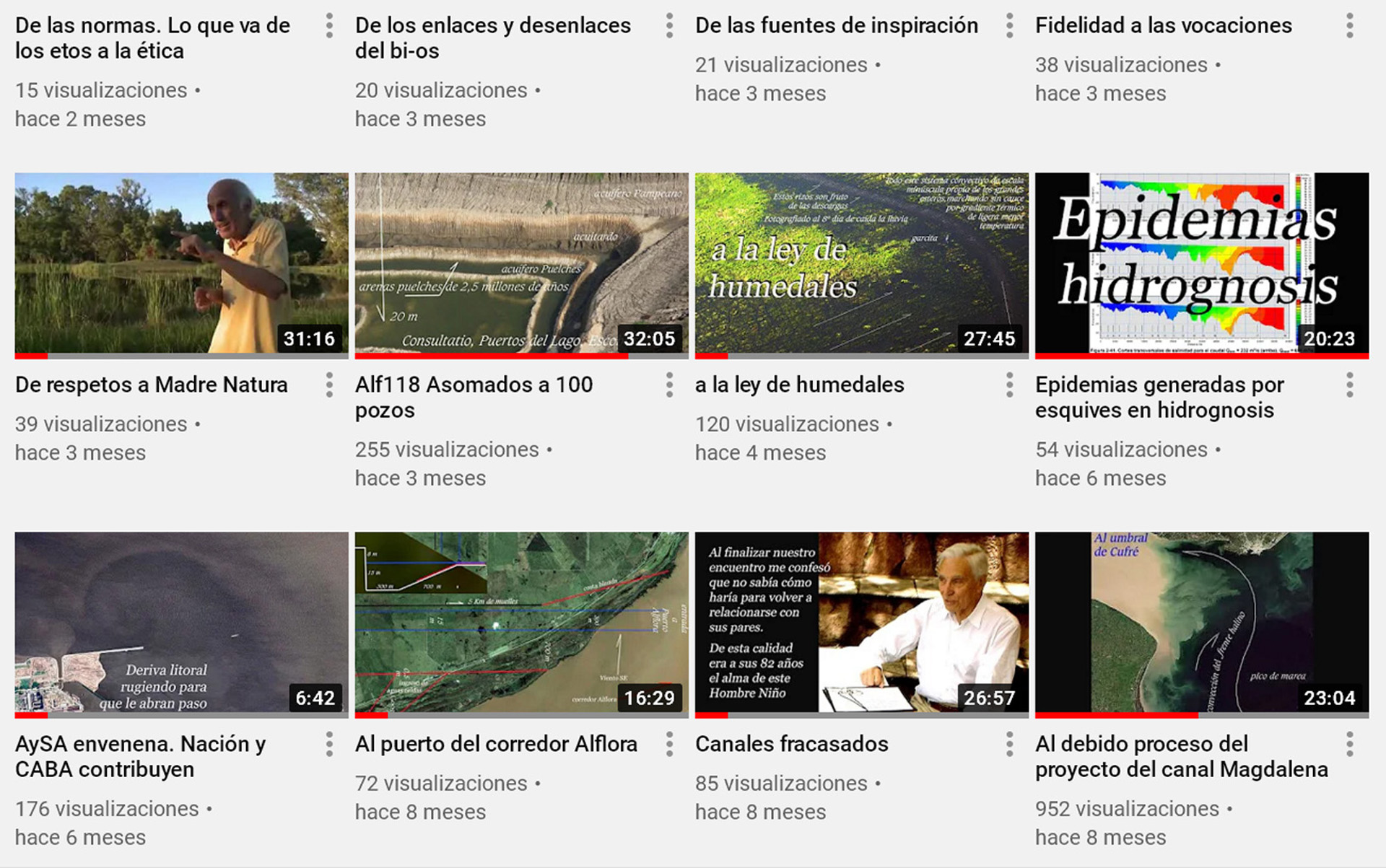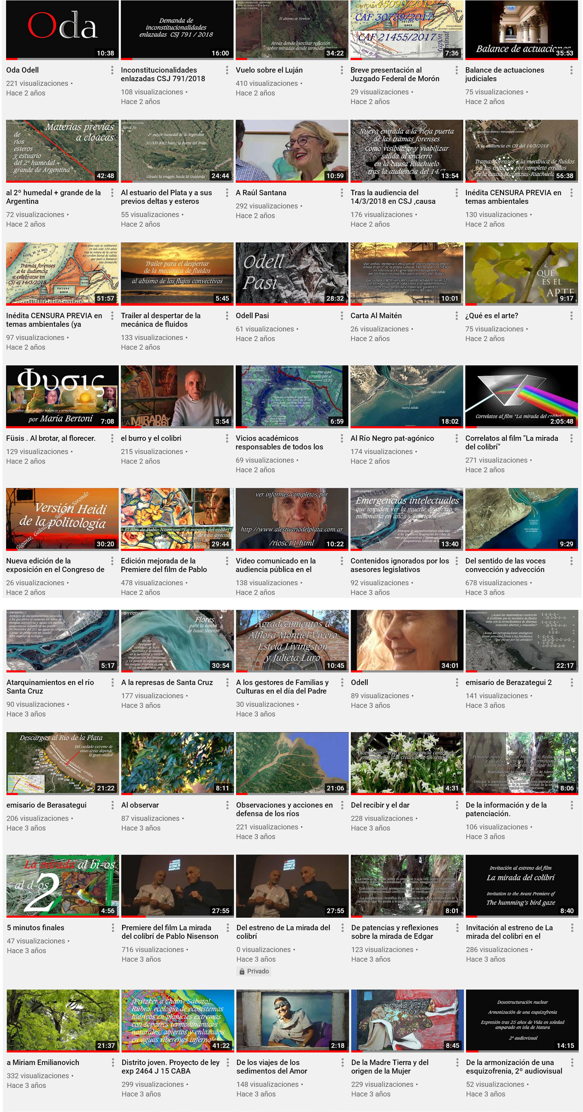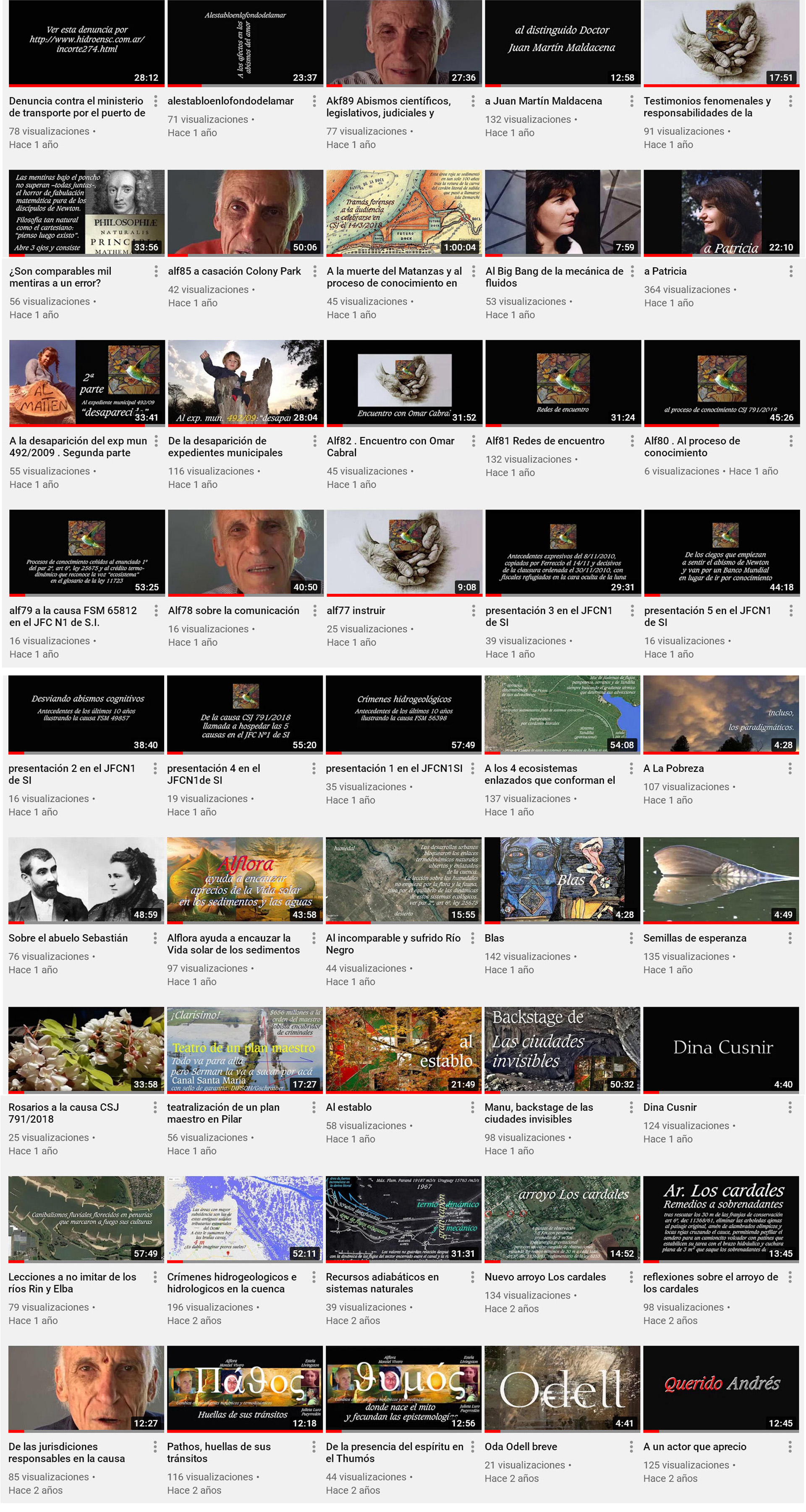 261 videos 123 horas (5 días y 3 hs) . promedio 28,5 m x video
